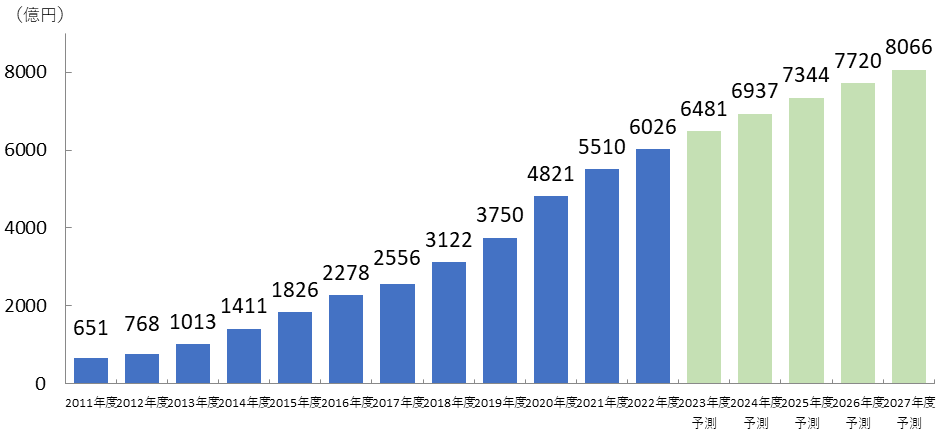 とくにコミック市場においては、2022年度の6,026億円から2027年度には8,000億円に市場規模が拡大すると予想されています。