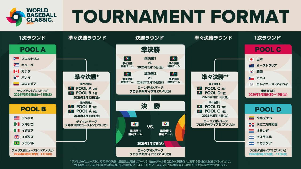- 日本1次ラウンドは東京ドームで3月6〜10日