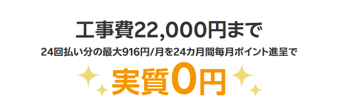 工事の種類は複数ありますが、楽天ポイントによる還元で工事費の総額が実質無料となります。