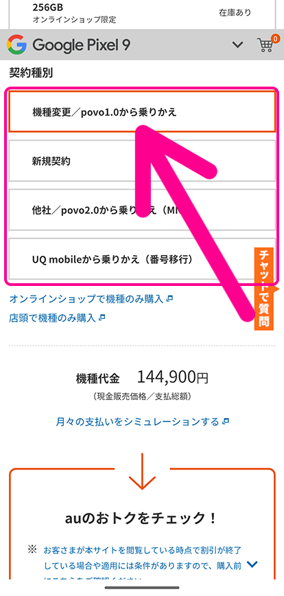 auオンラインショップでは、画面に沿って進んでいくだけで契約変更できます。