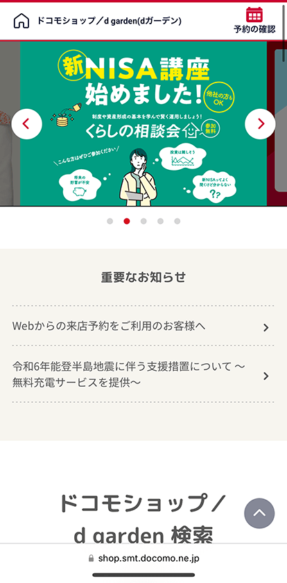 STEP.ドコモショップ/d garden検索ページにアクセス