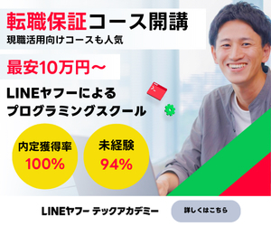 | 名前 | DMM WEBCAMP | LINEヤフーテックアカデミー | tech boost | キカガク | RUNTEQ | COACHTECH | SAMURAI ENGINEER | ポテパンキャンプ | Tech Mentor | ウズウズカレッジ「CCNAコース」 | ウズウズカレッジ「Javaコース」 | 忍者CODE |