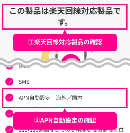 すでに楽天モバイルのAPN情報を入力している場合は、チェックを入れるだけで設定が完了します。