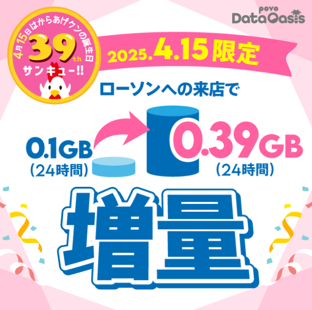 ・「povo Data Oasis ギガ2倍チャレンジ!ローソンへの来店で最大2GBデータ容量がもらえる!」が追加されました