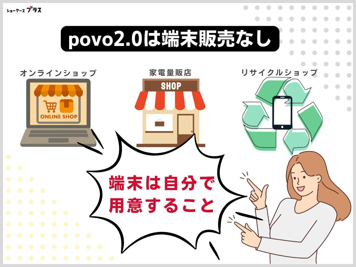 povo2.0は端末販売を行っていないため、機種変更する端末は自分で購入する必要があります。