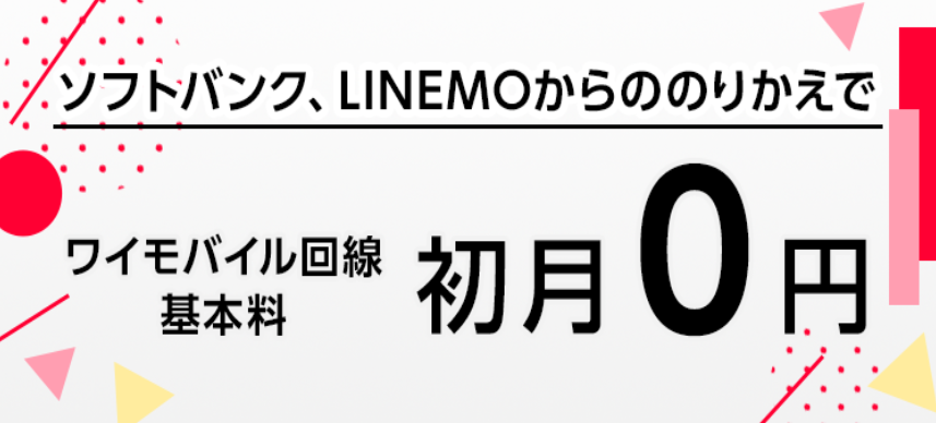 - 内容:ソフトバンク・LINEMOからの乗り換えで初月0円